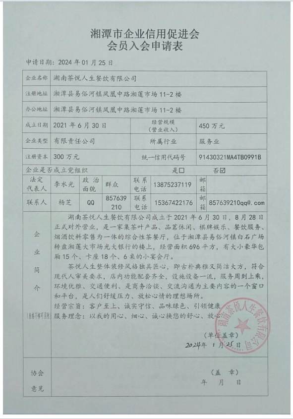 | 名稱: 湖南茶悅?cè)松惋嬘邢薰?/span> | 登記證號: 91430321MA4TB0991B | 法定代表人: 李水光 | |||||||||