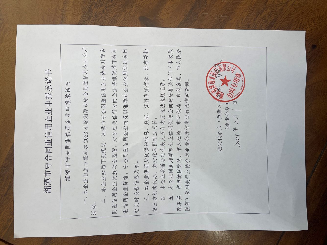 本企業(yè)根據(jù)《湘潭市守合同重信用企業(yè)申報規(guī)定》等編制 2023 年度企業(yè)信用報告書,并保證本報告書內(nèi)容真實、準(zhǔn)確、完整。