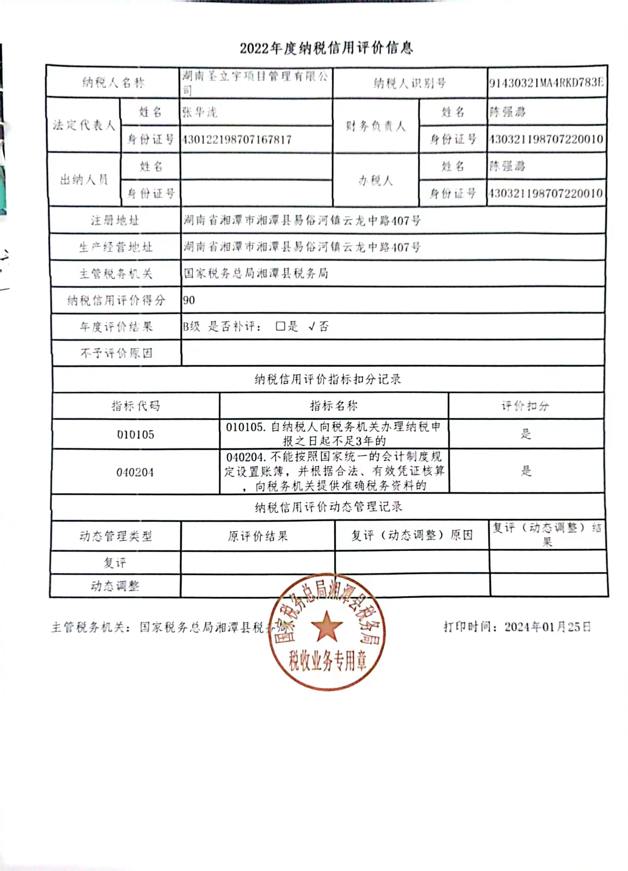 企業(yè)納稅信用等級報告: