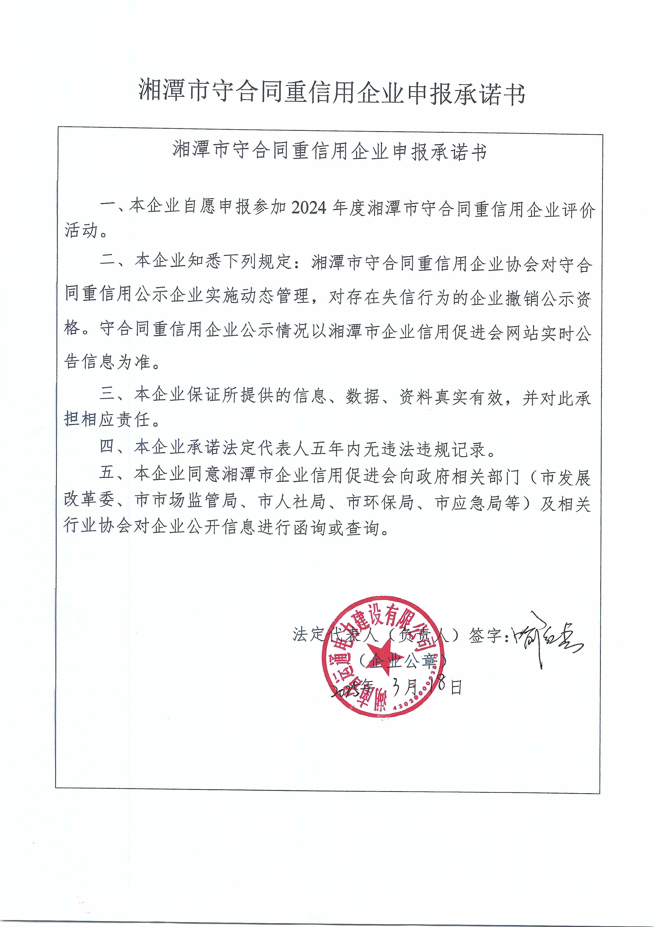 本企業(yè)根據(jù)《湘潭市守合同重信用企業(yè)申報(bào)規(guī)定》等編制 2024 年度企業(yè)信用報(bào)告書,并保證本報(bào)告書內(nèi)容真實(shí)、準(zhǔn)確、完整。