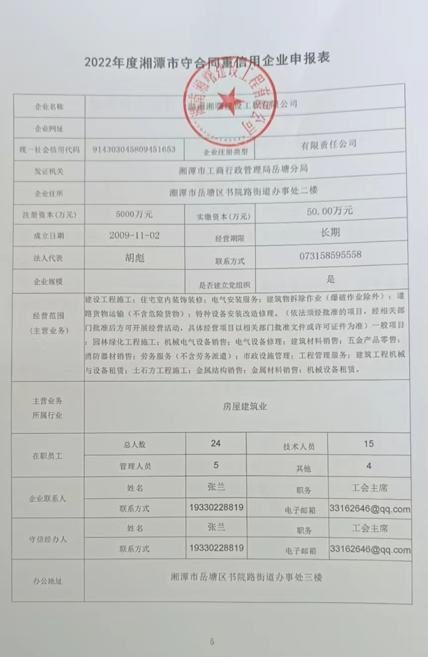 本企業(yè)根據(jù)《湘潭市守合同重信用企業(yè)申報(bào)規(guī)定》等編制 2022 年度企業(yè)信用報(bào)告書(shū),并保證本報(bào)告書(shū)內(nèi)容真實(shí)、準(zhǔn)確、完整。