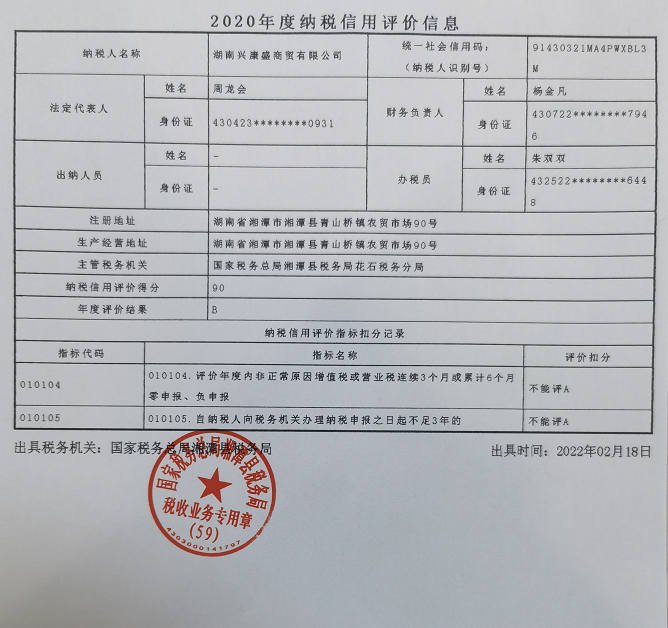 企業(yè)納稅信用等級報(bào)告: 納稅信用報(bào)告.png