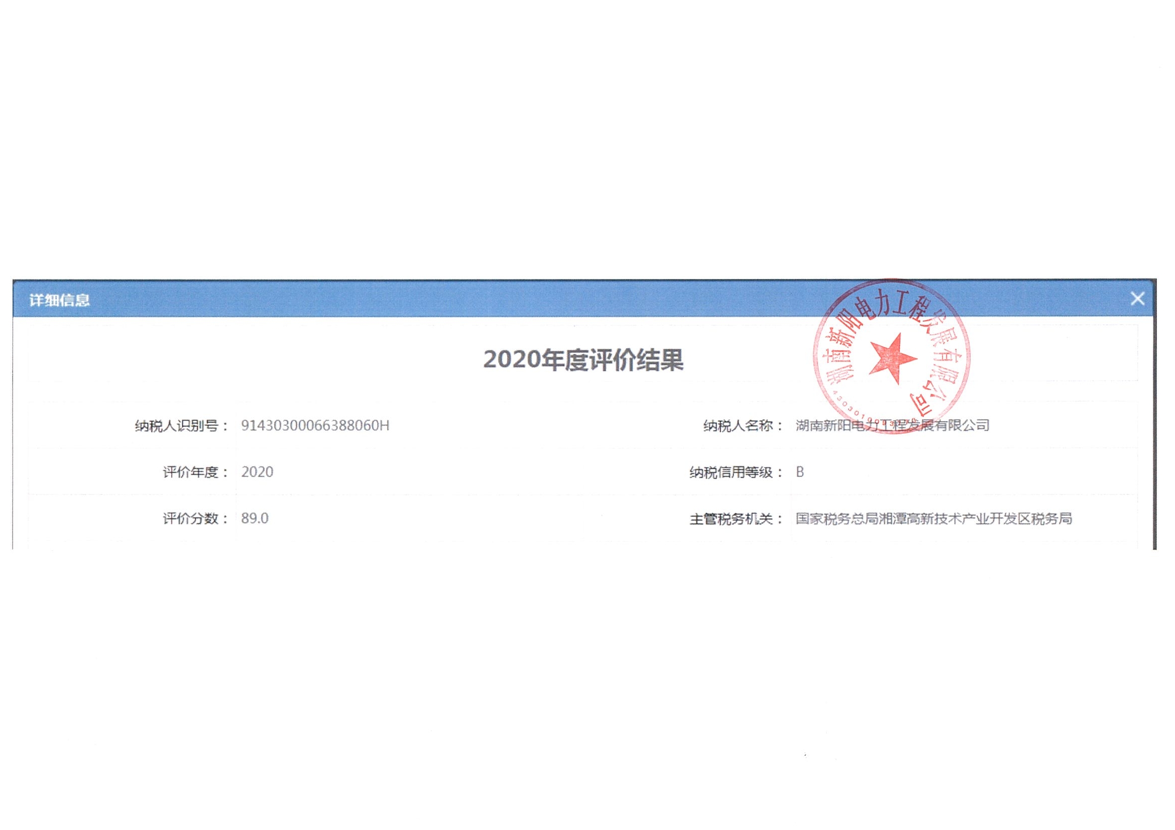 企業(yè)納稅信用等級報告: