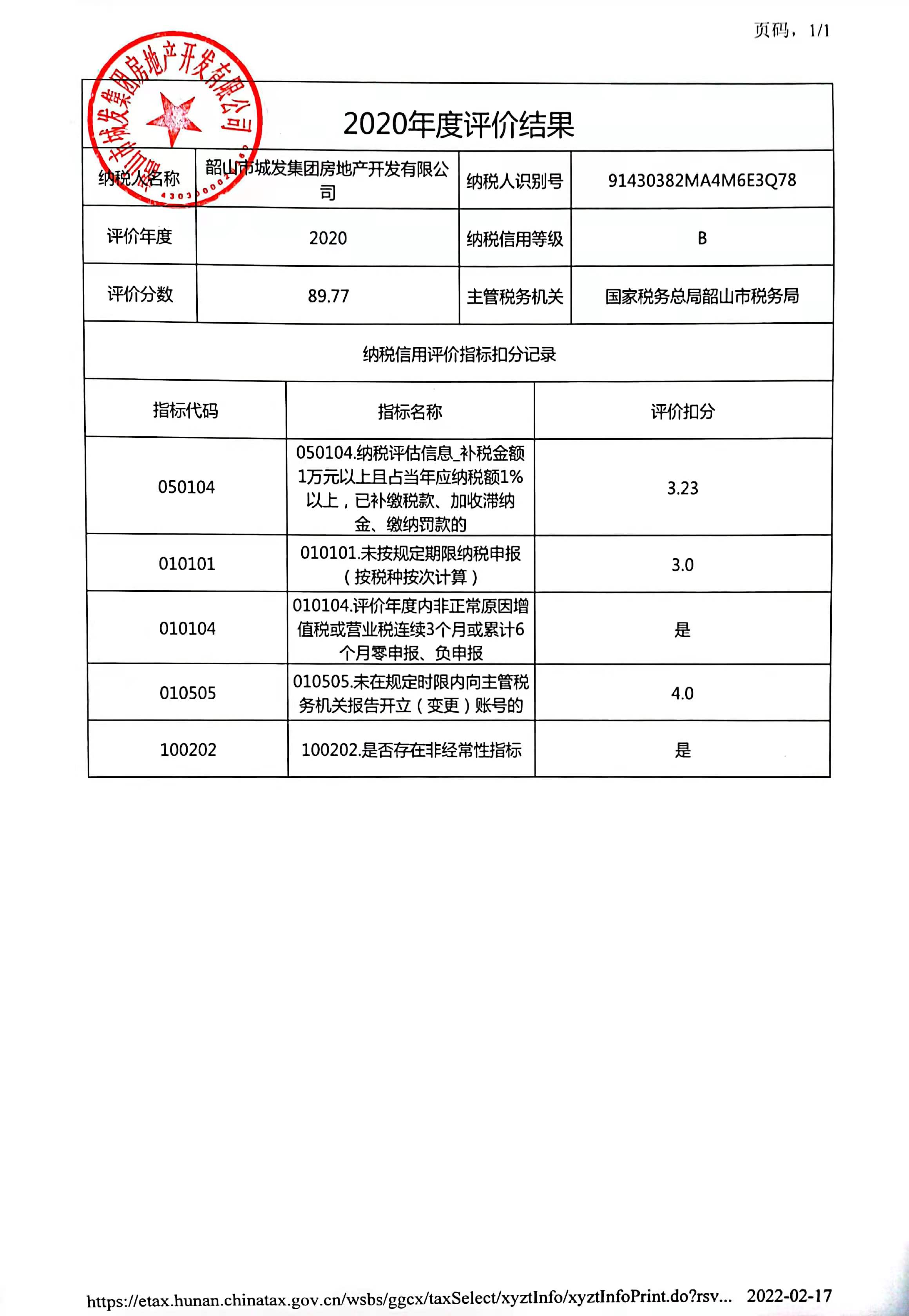 企業(yè)納稅信用等級報告: 納稅信用結(jié)果.jpg