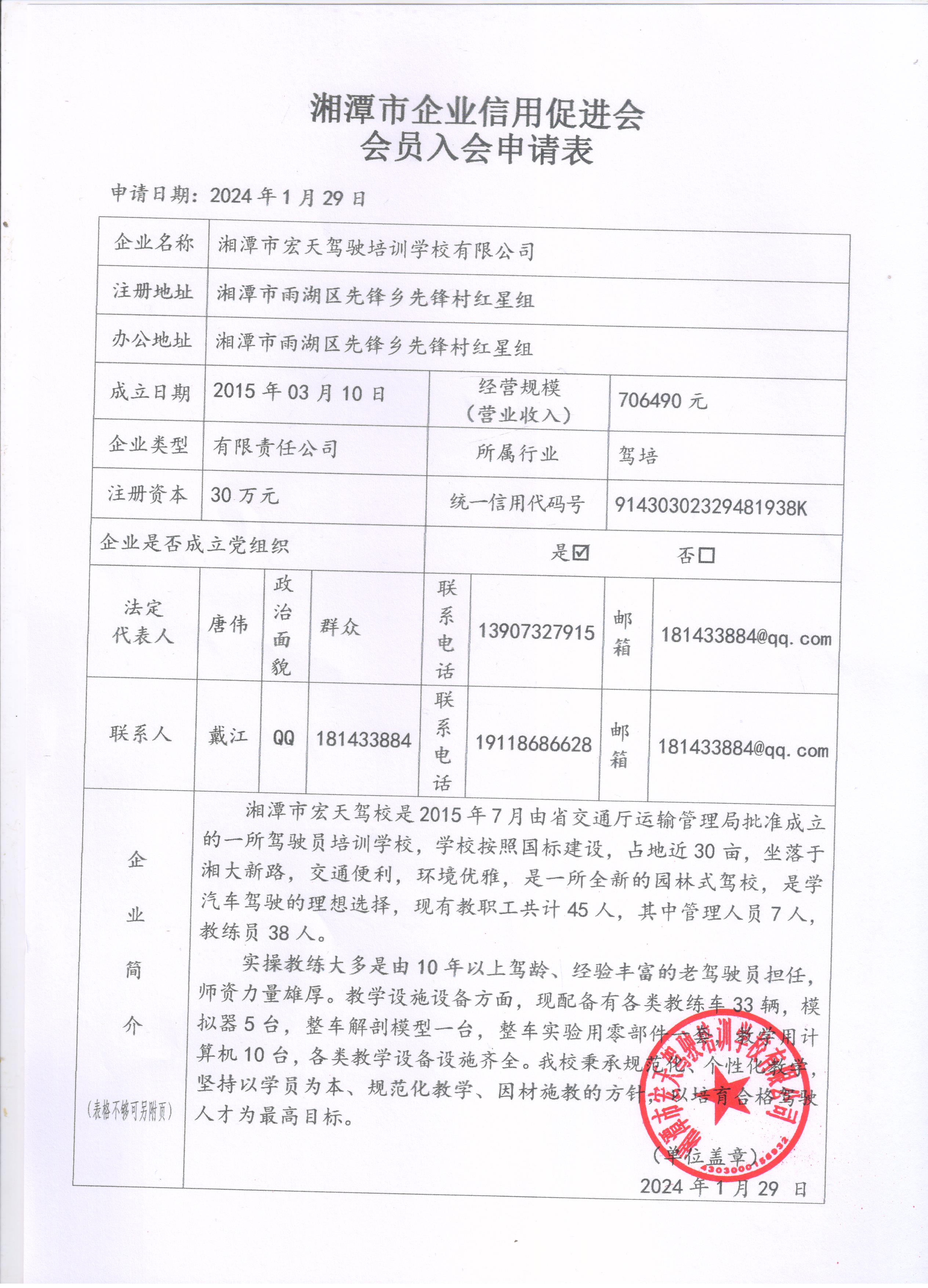 湘潭市宏天駕駛培訓學校有限公司2023年度信用報告 2023 已發(fā)布