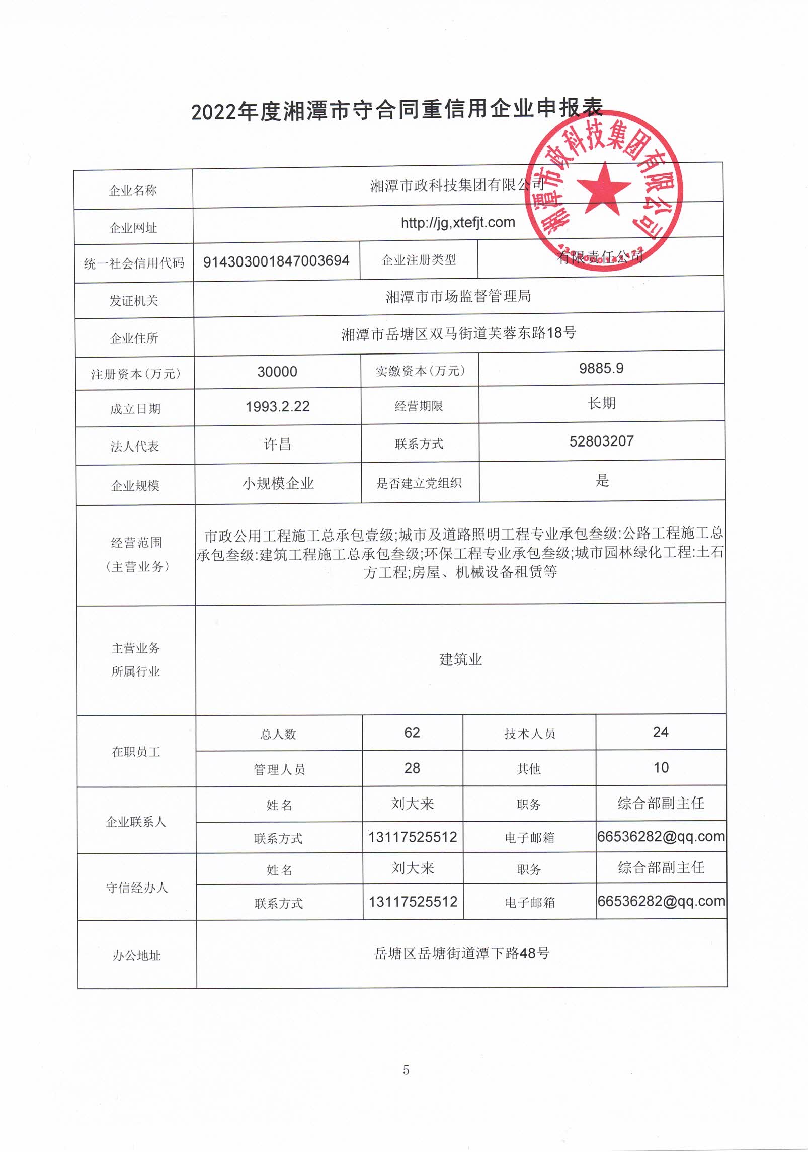 本企業(yè)根據(jù)《湘潭市守合同重信用企業(yè)申報(bào)規(guī)定》等編制 2022 年度企業(yè)信用報(bào)告書,并保證本報(bào)告書內(nèi)容真實(shí)、準(zhǔn)確、完整。