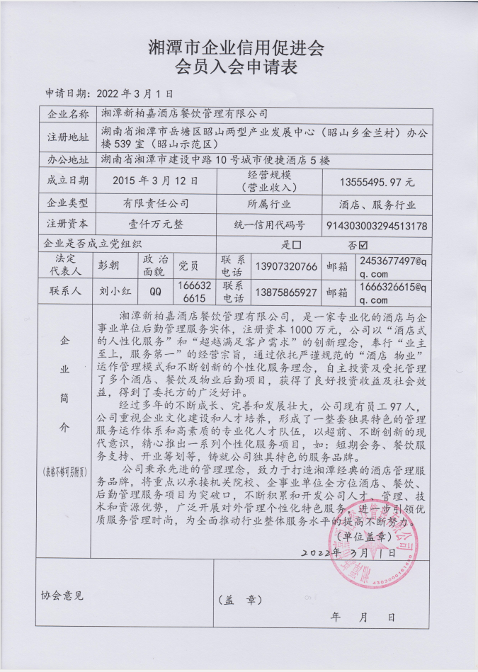 | 名稱: 湘潭新柏嘉酒店餐飲管理有限公司 | 登記證號(hào): 914303003294513178 | 法定代表人: 彭朝 | |||||||||||||||